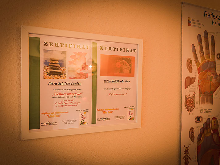 an Weiterbildungen und Seminaren teilgenommen. Letztmalig im Jahre 2016 an der Kosmetikschule "Alles Fuss" in Fürth, welche ich mit Auszeichnungen abgeschlossen habe.